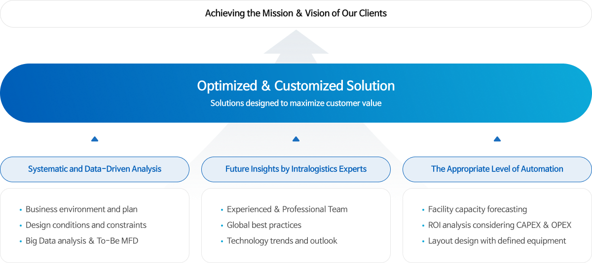 Analyze the current state of operations in new and existing warehouses to define warehouse automation concepts, operational strategies, processes, and design conditions.